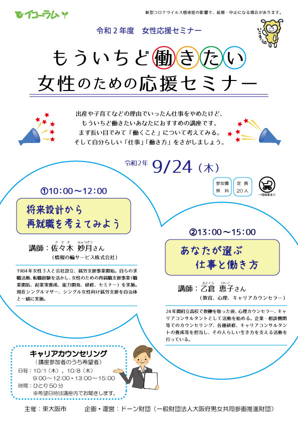 ところ:東大阪市立男女共同参画センター・イコーラム 第1・2研修室