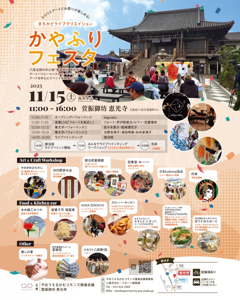 主催:やおうえるかむコモンズ推進会議、萱振御坊 恵光寺